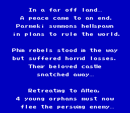 Final Fantasy 2, which some of you may think it's for SNES, is actually for NES. It is obviously the sequel to the original. Final Fantasy 2 is actually part four in Japan. Squaresoft and Nintendo decided not to bring part two over to the United States. It was successful in Japan, but not the favorite because of Dragon Quest. This game is somewhat graphically better then the original. The sprites look better and more detailed along with other things. Finally, us American gamers can play this game since Demiforce translated it to English. YES! |